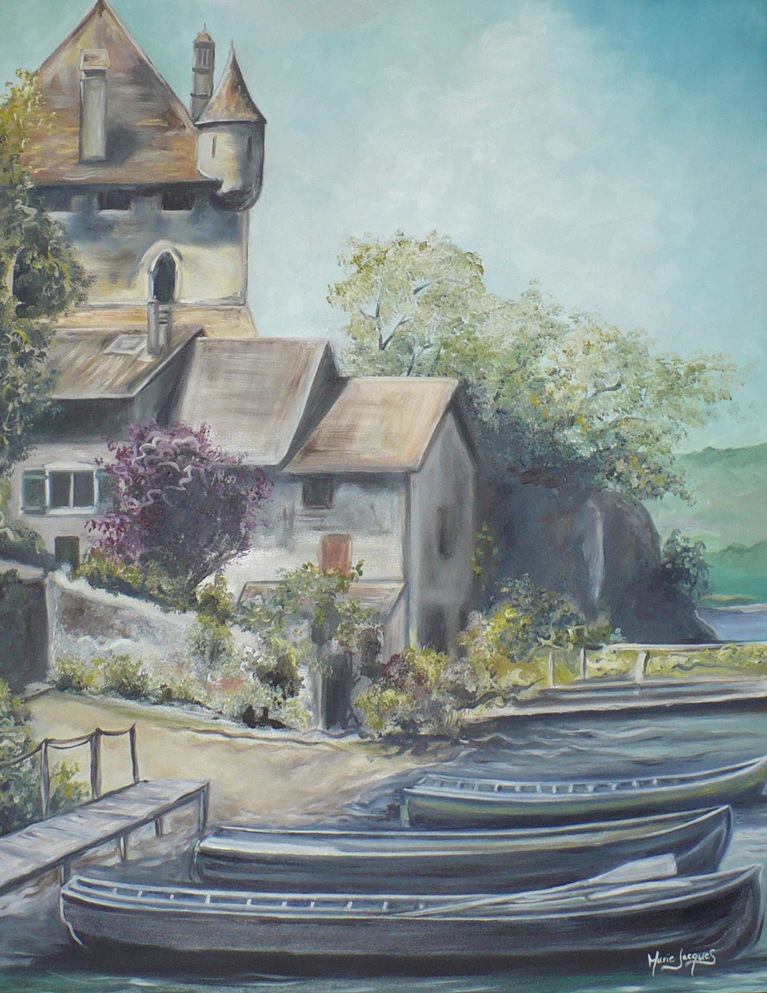 En 2002, j’ai commencé un DEC en Arts plastiques au CEGEP de Ste-Foy. J’ai eu l’occasion de travailler plusieurs matières et de me découvrir personnellement au travers différentes formes d’art. C’est aussi pendant ces cours que j’ai commencé à développer, comme je l’ai nommé plus tard, mon « Parallèle coloré. » Suite à ces cours en 2004, après deux sessions d’étude, je suis partie vivre 4 mois en Suisse pour une expérience de travail incroyable à Genève. Ce fut le début d’une véritable passion pour les voyages. J’ai profité de ce passage en Europe pour visiter aussi la France, les Pays-Bas, l’Espagne, l’Italie et l’Autriche, seule avec mon sac à dos. C’est donc à 19 ans que j’ai commencé à m’inspirer des plus beaux paysages en ce monde en les reproduisant à l’huile ou à l’acrylique. C’était le début d’une aventure dans le merveilleux monde de la reproduction de beaux moments vécus.