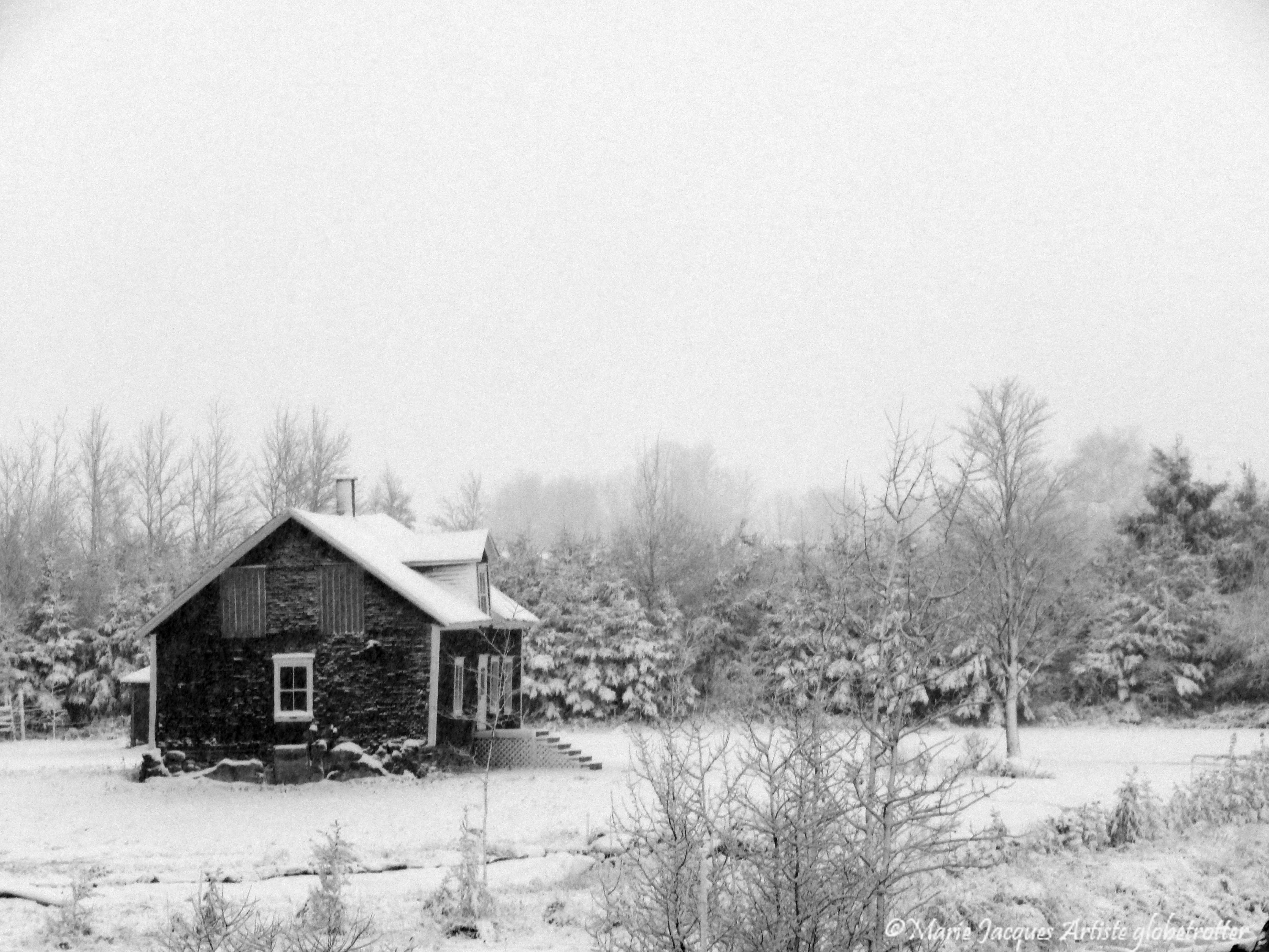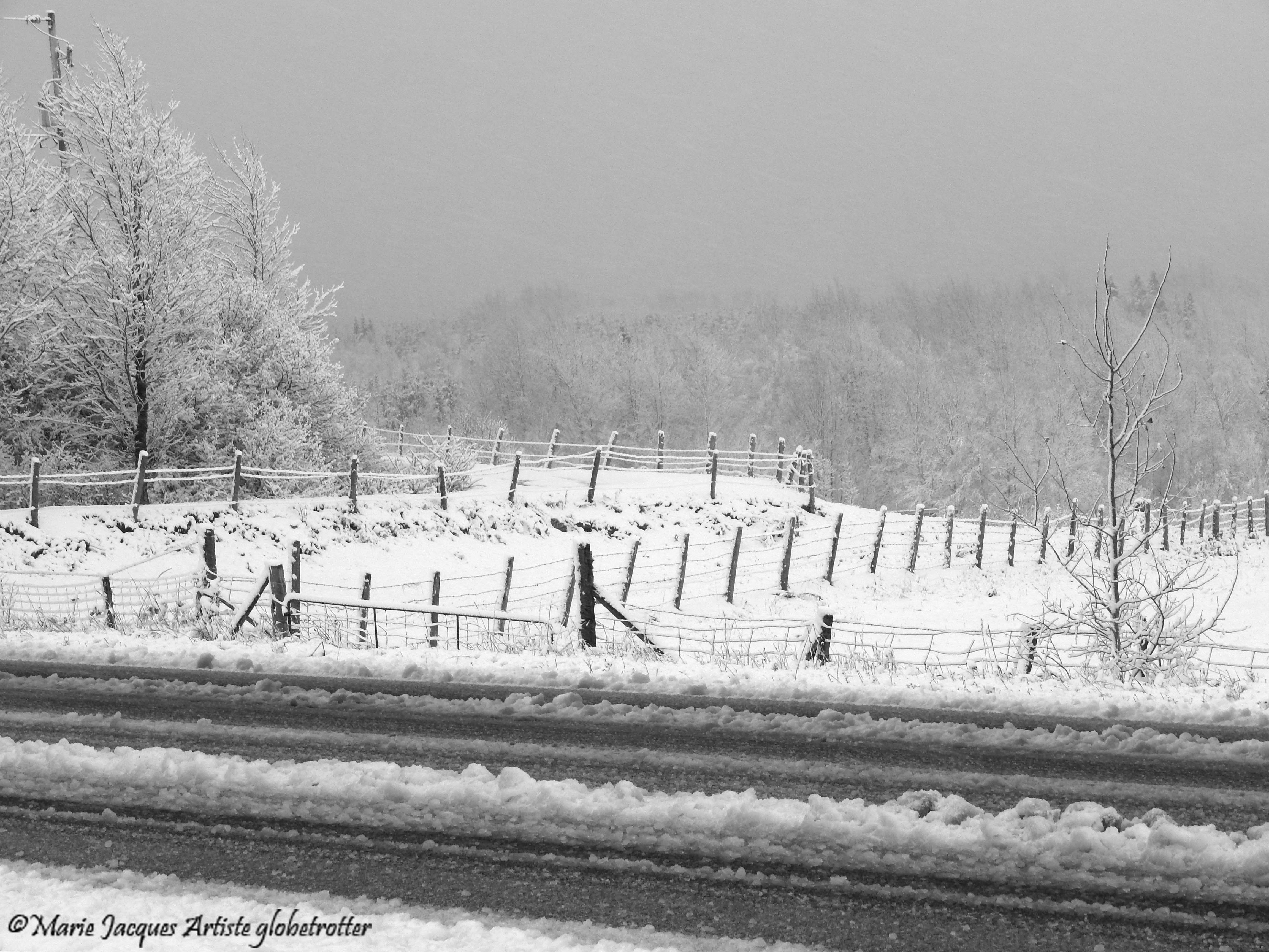 7 novembre 2014 , première vraie neige s’accumulant dans les champs, premier sentiment que l’hiver arrive à grands pas.