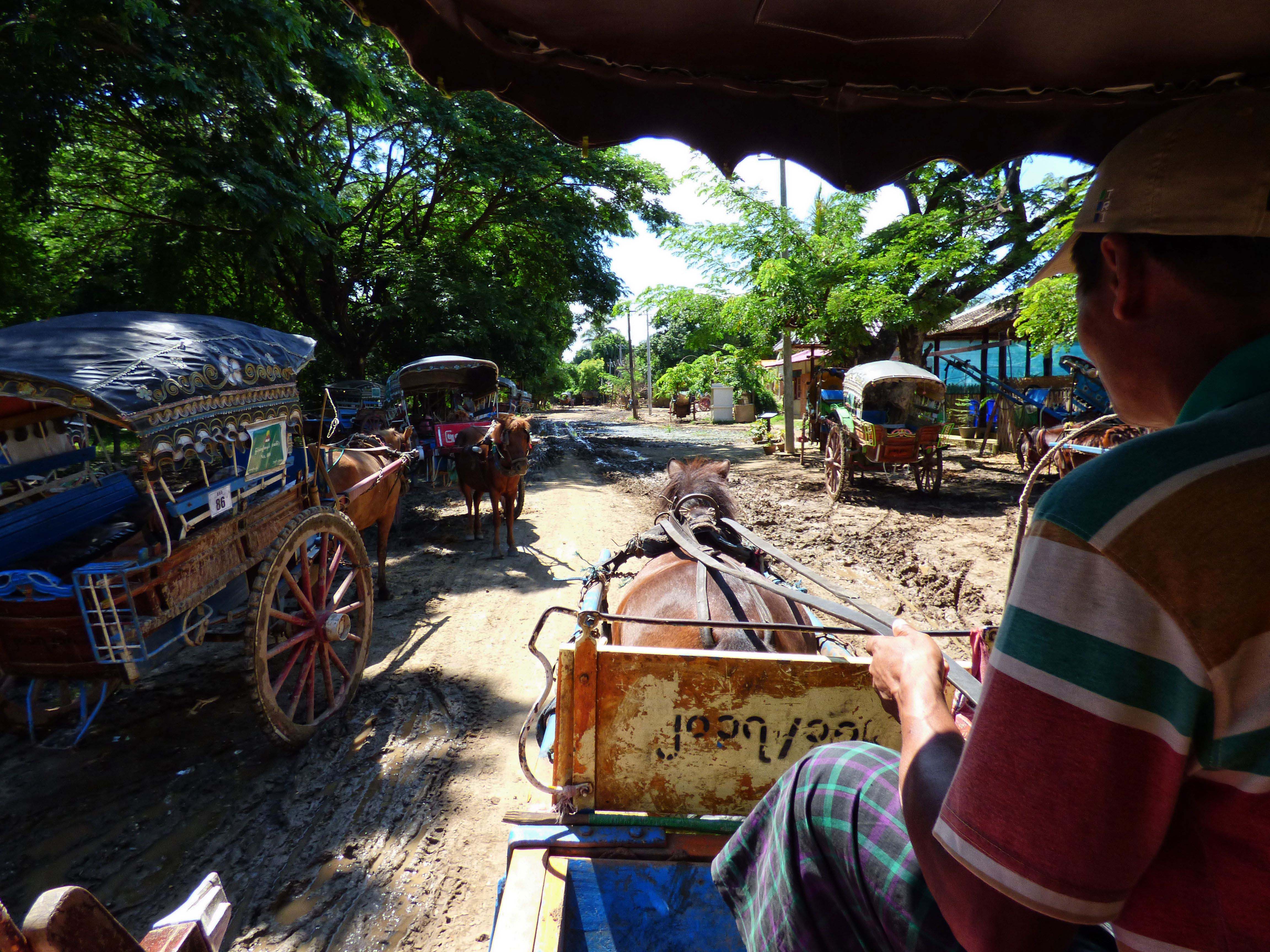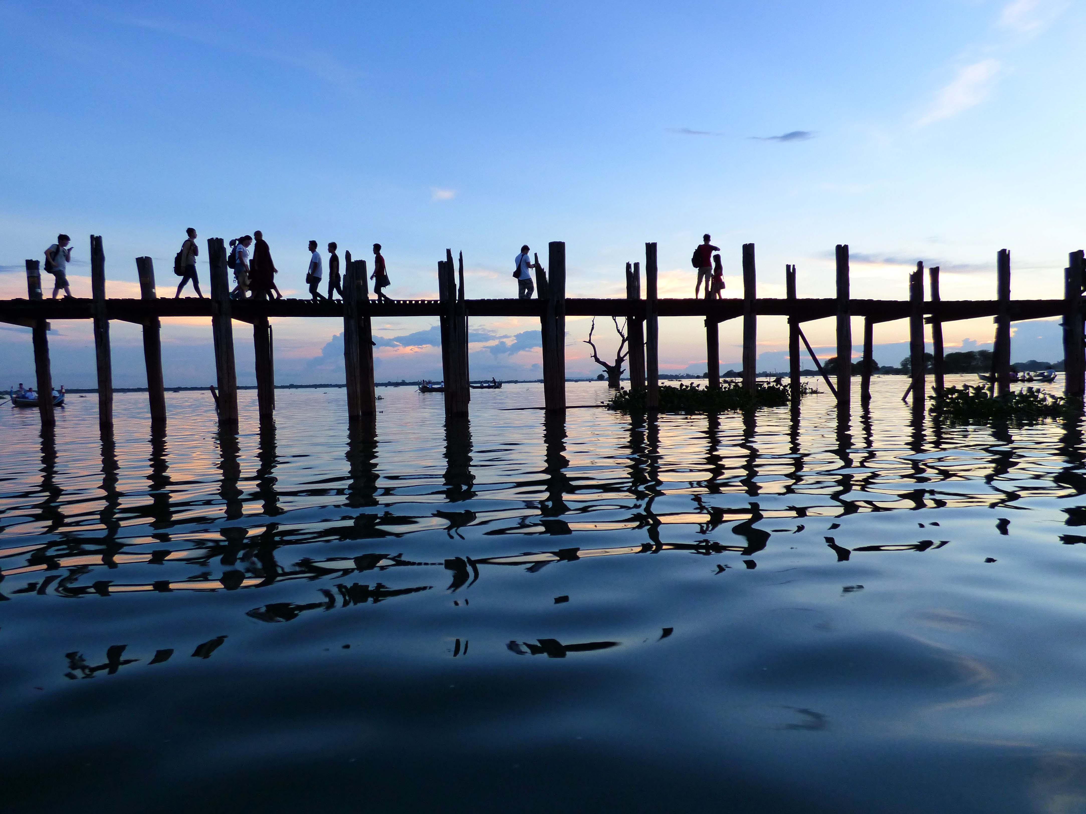 Lors de mon court séjour à Mandalay, j’ai plutôt trouvé mon bonheur dans les villes environnantes de Sagaing, Inwa et Amarapura. Mon coup de coeur est l’île d’Inwa. La visite se faisant en carriole à cheval dans des chemins de terre, elle se veut donc très authentique. Les bâtiments tout droit sortis d’une époque où la ville était une capitale (Ava), c’est donc une grande richesse architecturale que j’y ai découvert, entre autres les monastères Bagaya et Maha Aung Mye Bonzan. Mais quoi de plus extraordinaire que de terminer sa journée en bateau à contempler le coucher de soleil au pont d’U Bein à Amarapura! Un souvenir impérissable.