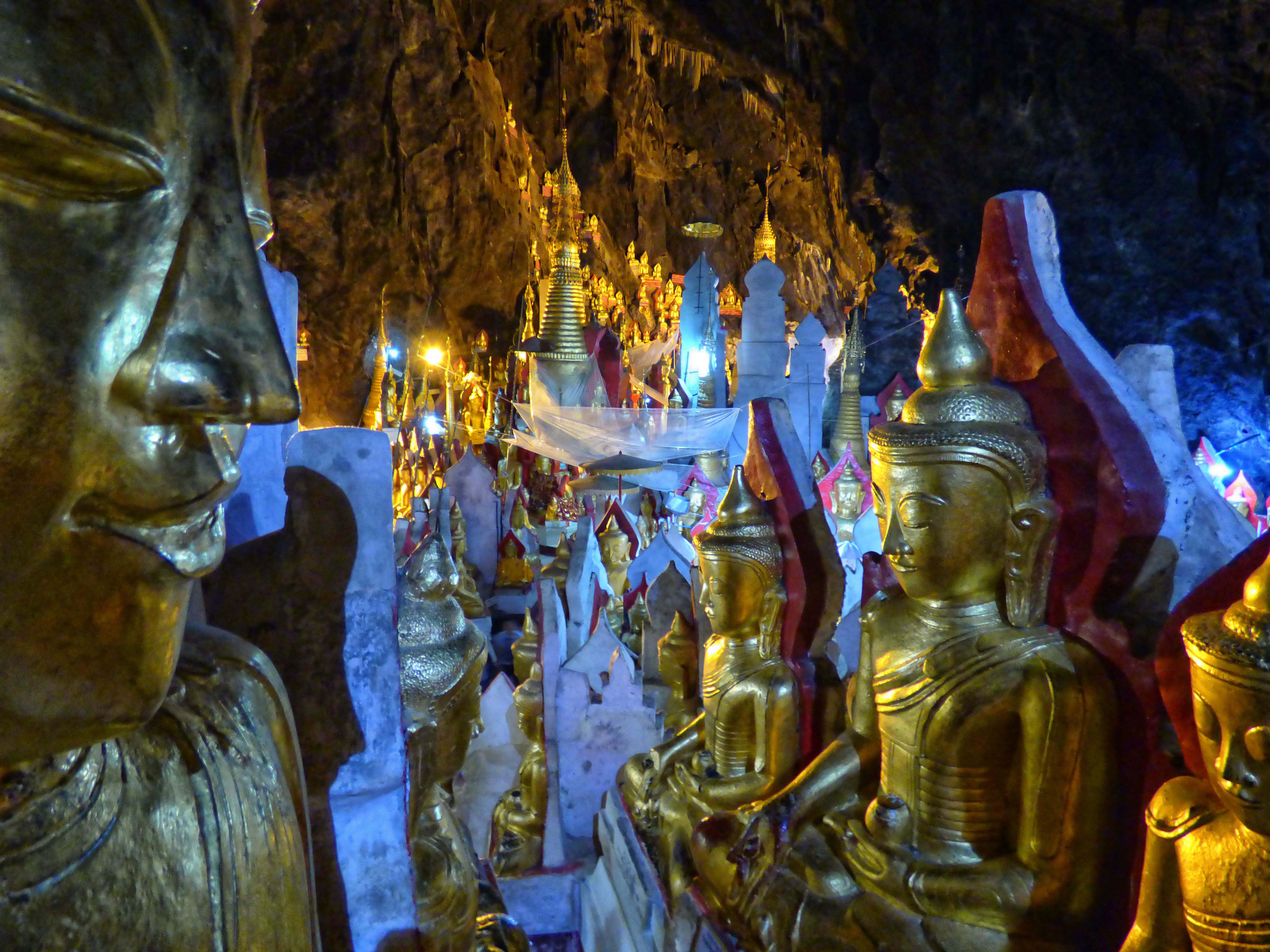 À proximité de Lac inle se trouvaient deux sites qui m’intéressaient beaucoup, Pindaya et Kakku. J’ai eu la chance de partager un taxi et ces belles journées d’excursion avec deux français, Denis et Marielle. Les détours en valaient vraiment la peine. Encore un fois, comme c’est bien fréquent dans ce voyage, nous étions presque seuls sur les sites. Les joies de la basse-saison!